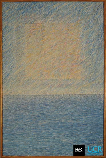 | dc.description | Obra abstracta de tonos muy tenues y formato vertical, con plano de fondo dividido en dos secciones, la superior, de trazos azules y amarillos oblícuos, contiene un rectángulo amarillo, la inferior es azul intenso con trazos horizontales. | es |